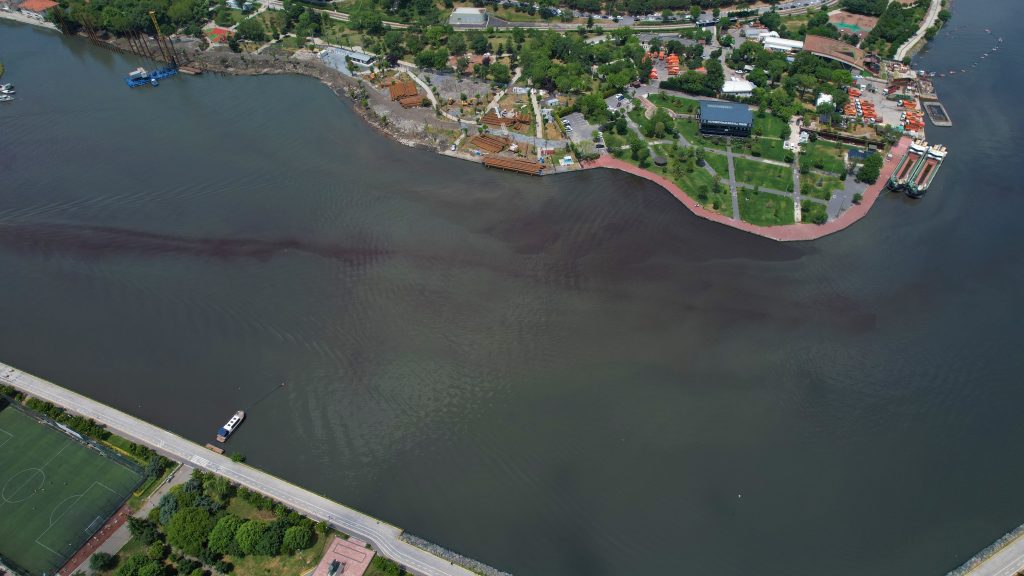 İstanbul’un simgelerinden “Altın Boynuz” olarak da bilinen Haliç’te suyun rengi kahverengiye döndü. Suyunun rengi değişen Haliç, dron ile görüntülendi.