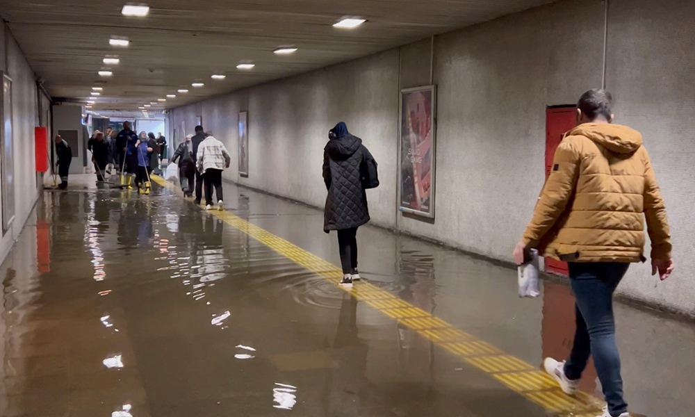 İstanbul Fatih’te bulunan Ulubatlı Metro istasyonun alt geçidinde bulunan lavabo giderinin patlaması sonucu alt geçidi su bastı. Oluşan su birikintisi nedeniyle vatandaşlar suların içerisinde yürümek zorunda kaldı.