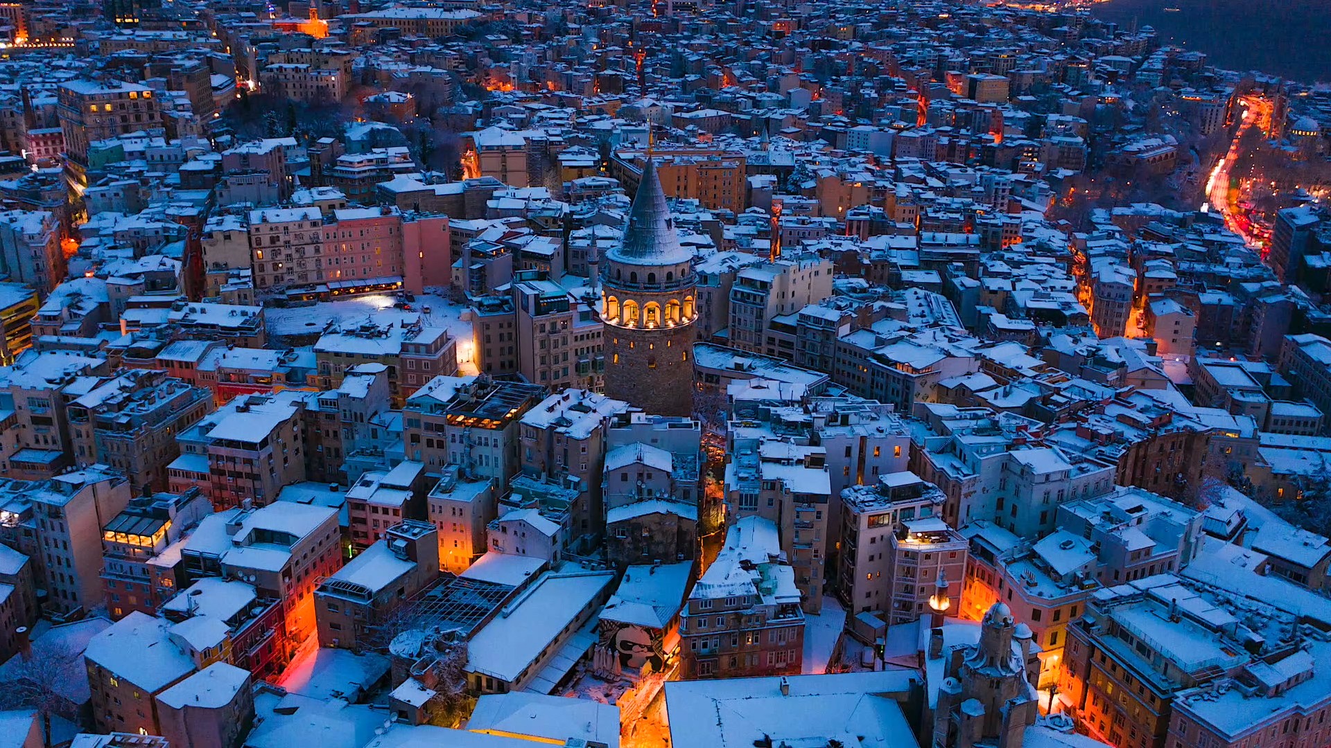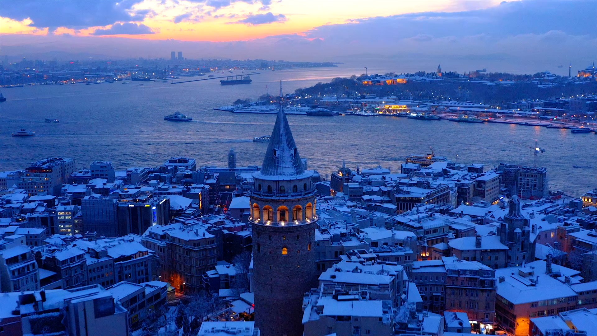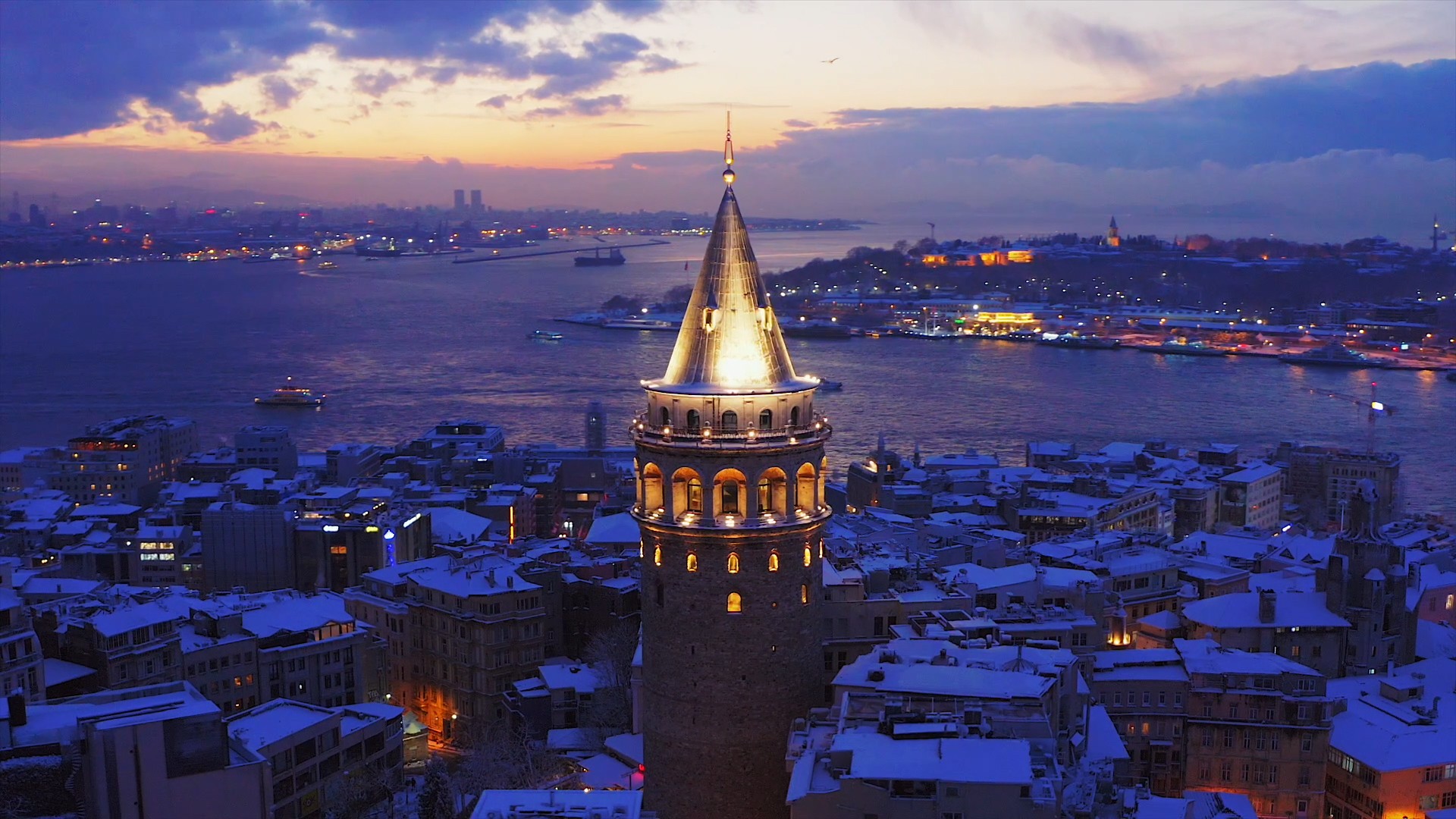 Çektiği videolar ile İstanbul’un en özel manzaralarını sosyal medya hesabından paylaşan drone pilotu Yusuf Kaan Yıldırım Galata Kulesi’ni gün doğumunda görüntüledi. Beyaz gelinliğini giyen İstanbul manzarası ile birlikte Galata Kulesi’nde en özel anlardan birisi olan ışıkların kapanma anını kayıt altına aldı. Işıkların açılıp kapanma zamanı için günler öncesinden birçok kez prova ve deneme yapan Yıldırım, en sonunda kartpostallık manzarayı havadan görüntüledi. Tarihi yarımadada bulunan Topkapı Sarayı ile Galata Kulesi’nin kış manzarası masalsı görüntüler oluşturdu.