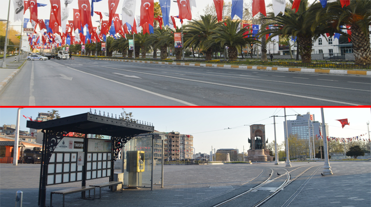 Sokağa çıkma kısıtlamasının dördüncü gününde şehrin geneli “Korona virüs” sessizliğine büründü. Pazar günü olması sebebiyle de şehrin işlek noktalardan olan E-5 Karayolu, Vatan Caddesi ve Taksim Meydanı civarındaki sessizlik şehre farklı bir atmosfer kazandırdı.