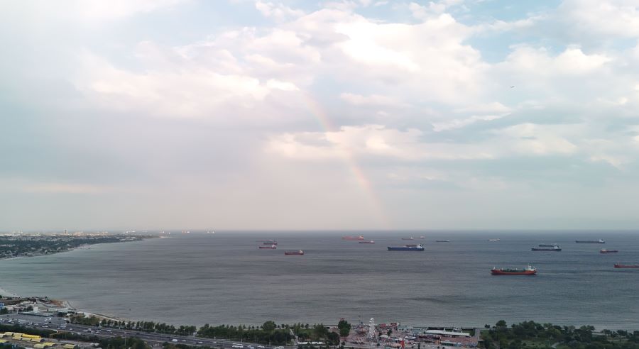 Yağmurun yağış görüntüsü gün batımı ile birlikte eşsiz görüntüler oluşturdu. Gün batımında ortaya çıkan gökkuşağı İstanbul semalarını renklendirdi. Gökkuşağı kimi zaman Marmara Denizi üzerinde bekleyen gemiler ile birlikte kimi zamanda bir kısmı yağmur bulutları ile birlikte görüntülere yansıdı.