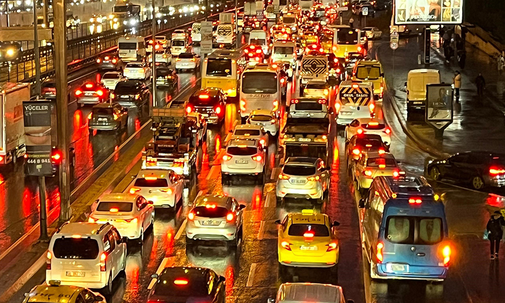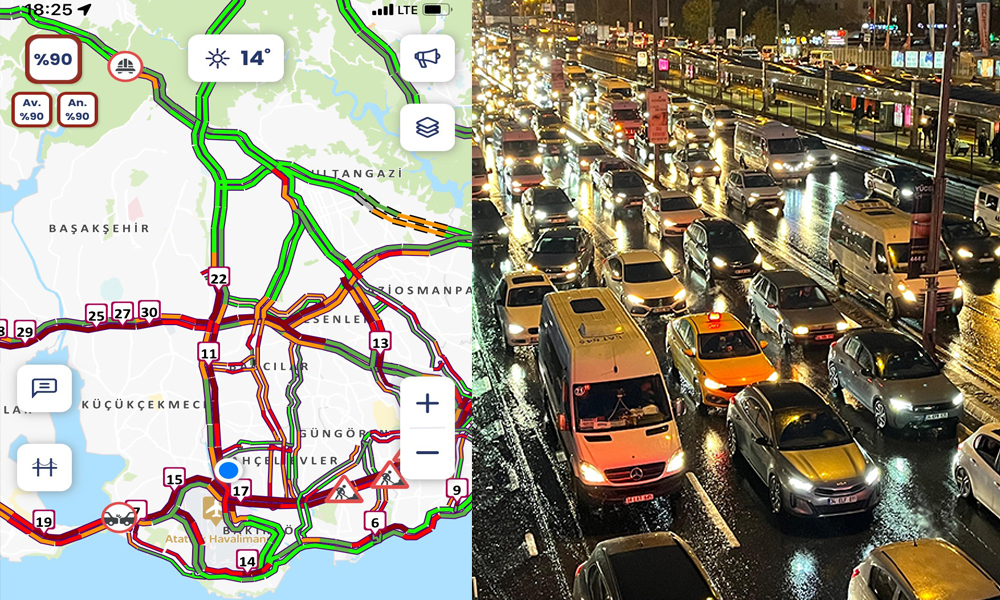 İstanbul’da haftanın Avrupa Yakası’nda, mesai saatinin bitimi ve kentte aralıklarla etkili olan yağış nedeniyle D-100 karayolunda trafik yoğunluğu yaşanıyor. Beylikdüzü ve Yenibosna’da Avrupa ve Anadolu yönlerine doğru trafik yoğunluğu yaşanıyor. Trafik zaman zaman durma noktasına gelirken, İBB trafik uygulamasında trafiğin 18.30 itibariyle yüzde 90’a ulaştığı görüldü.
