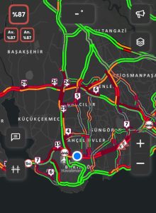 İstanbul’da haftanın son iş günü iftar öncesi İstanbul Büyükşehir Belediyesi Trafik Yoğunluğu Haritası verilerine göre trafik yoğunluğu yüzde 87 olarak ölçüldü. Yenibosna D-100 Karayolu’nda araçlar ilerlemekte zorlanırken uzun araç kuyrukları oluştu. İşlerinden ve okullarından dönen vatandaşlar evlerine gitmekte zorluk yaşadı.
