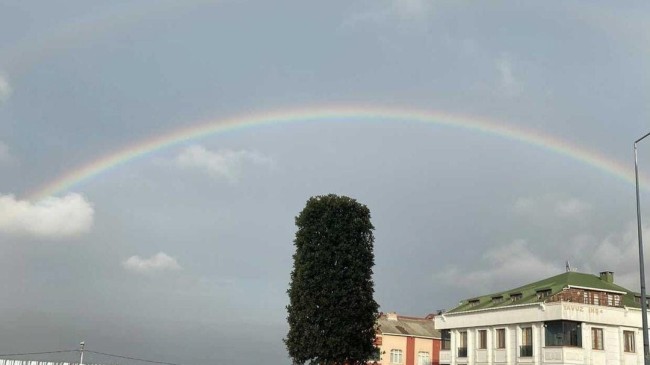 İstanbul’da kısa süreli etkili olan yağışlı hava sonrasında gökyüzünde oluşan gök kuşağı kendine hayran bıraktı.