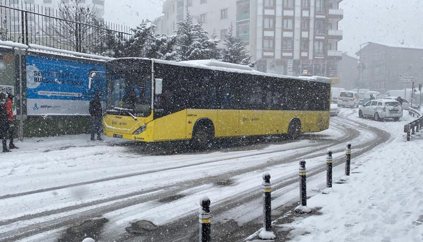 Yokuş aşağıya inen bir İETT otobüsü ise kar kaplanan yoldan kayarak caddedeki başka bir otomobile çarptı. Otobüs daha sonra kaldırımda bulunan dubalara çarparak durabildi.