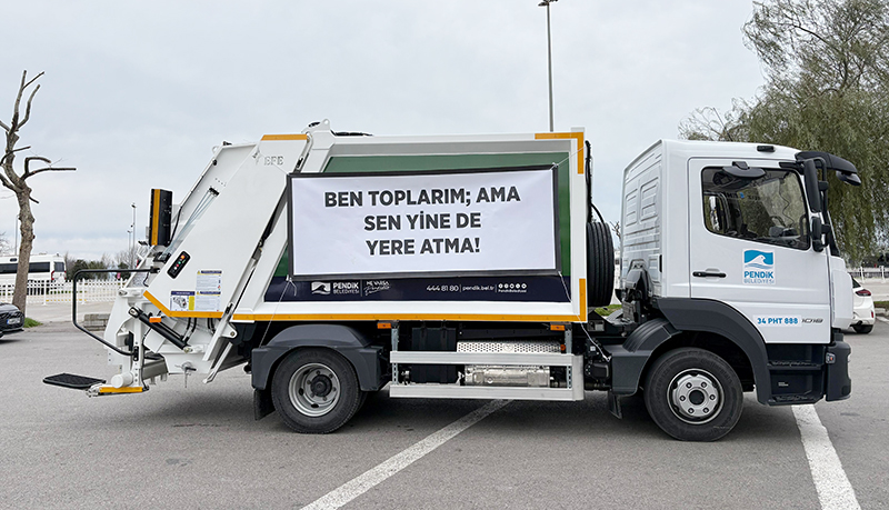 Pendik’te Belediye filosuna kattığı yeni temizlik araçlarını farkındalık odaklı özel bir çalışmayla sahaya çıkardı. Üzerlerindeki dikkat çekici mesajlarla hizmet vermeye başlayan kamyonları gören vatandaşlar gözlerine inanamadı. Bu çalışma, temiz çevrenin belediye ve vatandaş iş birliğiyle mümkün olduğuna dikkat çekiyor.
