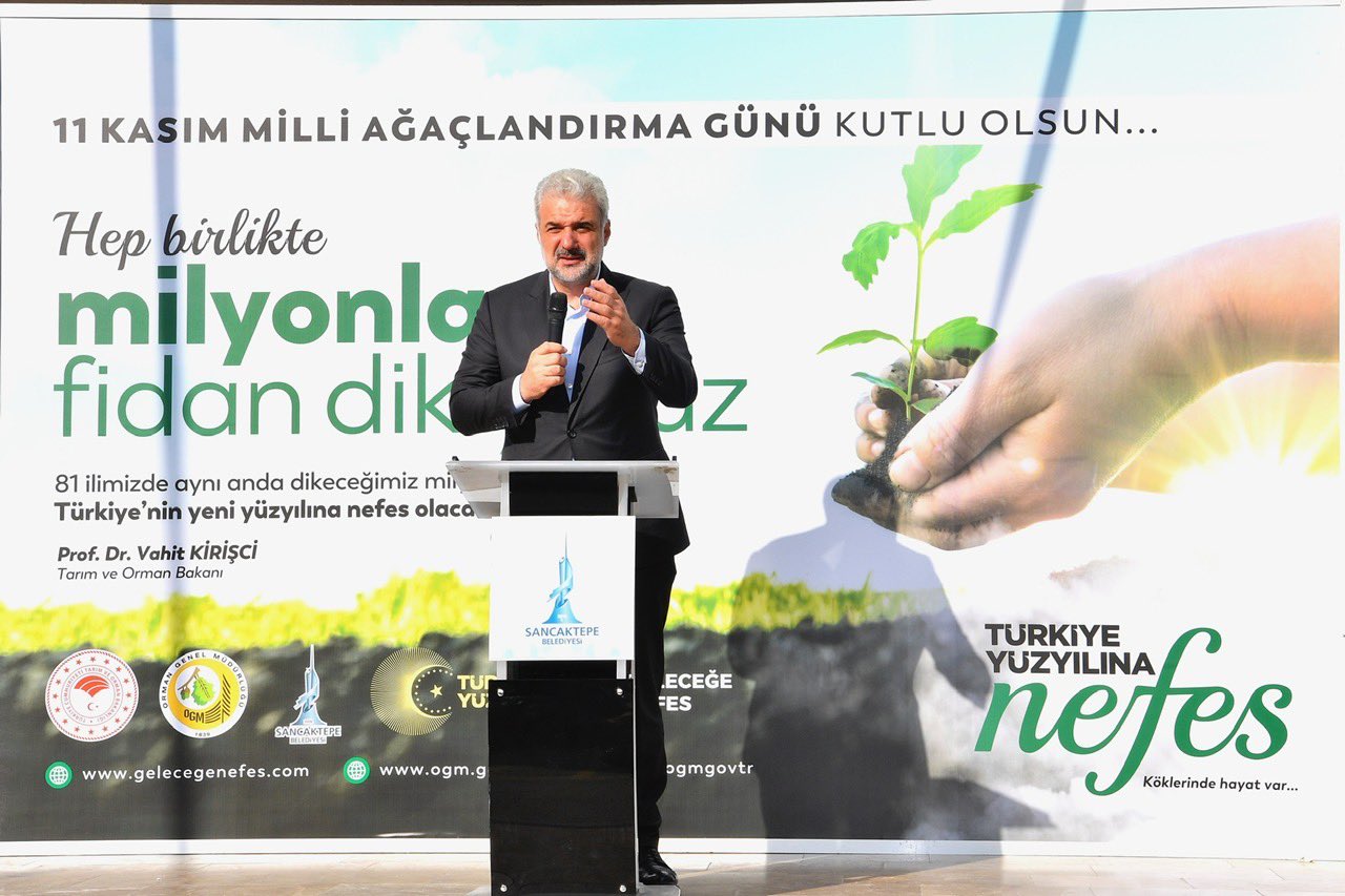 Cumhurbaşkanı Recep Tayyip Erdoğan’ın himayesinde Tarım ve Orman Bakanlığı Orman Genel Müdürlüğü koordinasyonunda başlatılan ‘Geleceğe Nefes’ kampanyası çerçevesinde Sancaktepe’de Tarım ve Orman Bakanlığı, Orman Genel Müdürlüğü ve Sancaktepe Belediyesi işbirliğince 11 Kasım Milli Ağaçlandırma Günü’nde 600 fidan, Borsa İstanbul Muhsin Yazıcıoğlu İmam Hatip Ortaokulu’unda toprakla buluştu.