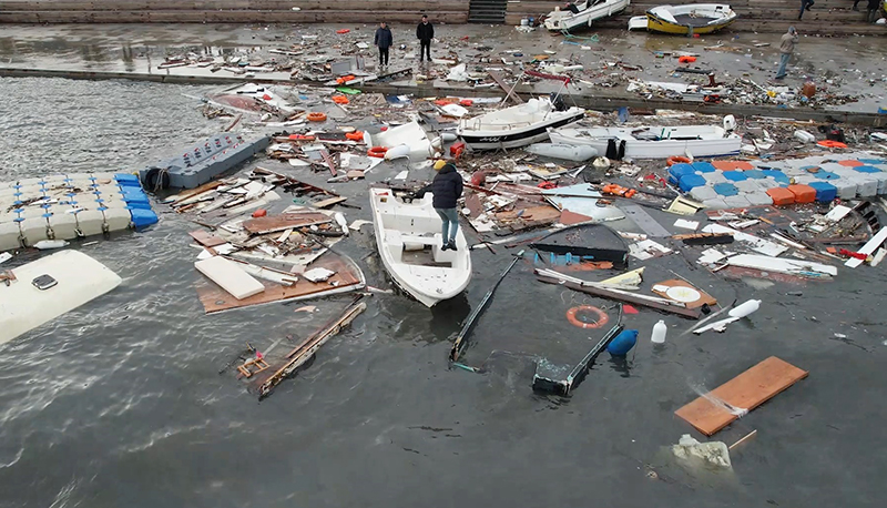 Şiddetli dalgalar nedeniyle bazı tekneler alabora olurken, bazıları parçalanarak kullanılamaz hale geldi, bazı teknelerin ise battığı öğrenildi. Sahil boyunca teknelerin birbirine çarptığı, bağlama halatlarının koptuğu ve iskelelerde hasar oluştuğu görüldü.