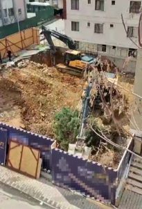 Üsküdar Belediyesi’nin ruhsat ve izin verdiği inşaat alanında bulunan yaklaşık 30 yıllık olduğu öne sürülen ağaçlar, iş makineleriyle kesildi.