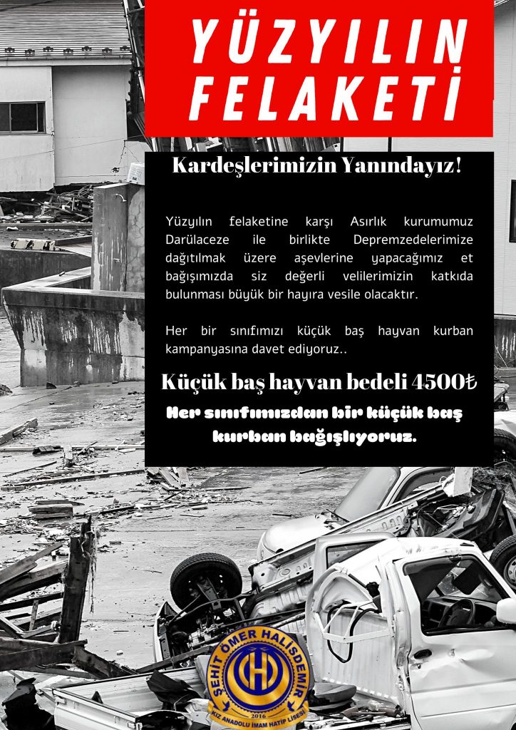 Çekmeköy Şehit Ömer Halisdemir Kız Anadolu İmam Hatip Lisesi de bu kapsamda önemli bir kampanya başlatarak deprem bölgesine yardım etmeyi amaçlıyor.