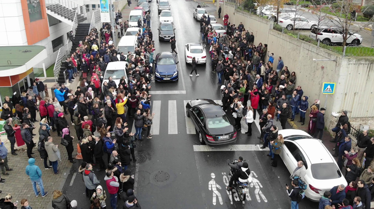 Doğa Koleji’nin Ataşehir’deki yönetim binası önünde toplanan veliler, kurumun devriyle ilgili dün yapılacağı duyurulan açıklamanın ertelenmesini protesto etti. Alkış tutarak sloganlar atan veliler, zaman zaman da yolu trafiğe kapattı. Yoldan geçen araçların sürücüler de korna çalarak velilerin protestosuna eşlik etti. Kurumun kendilerini oyaladığını ileri süren veliler, ellerinde “Öğretmenlerimizin maaşlarını verin” pankartları taşıdı. Öğrenci Velisi Reyhan Acaroğlu, “Aylardır okulumuzla, eğitimimizle sıkıntılar yaşıyoruz. Yarın da durdurulacağı söyleniyor. Öğretmenlerimiz mağdur. Biz okulumuzda kalmak istiyoruz. Çocuklarımız öğretmenlerinden, arkadaşlarından ayrılmak istemiyor. Çaresiziz, zor durumdayız” diye konuştu.