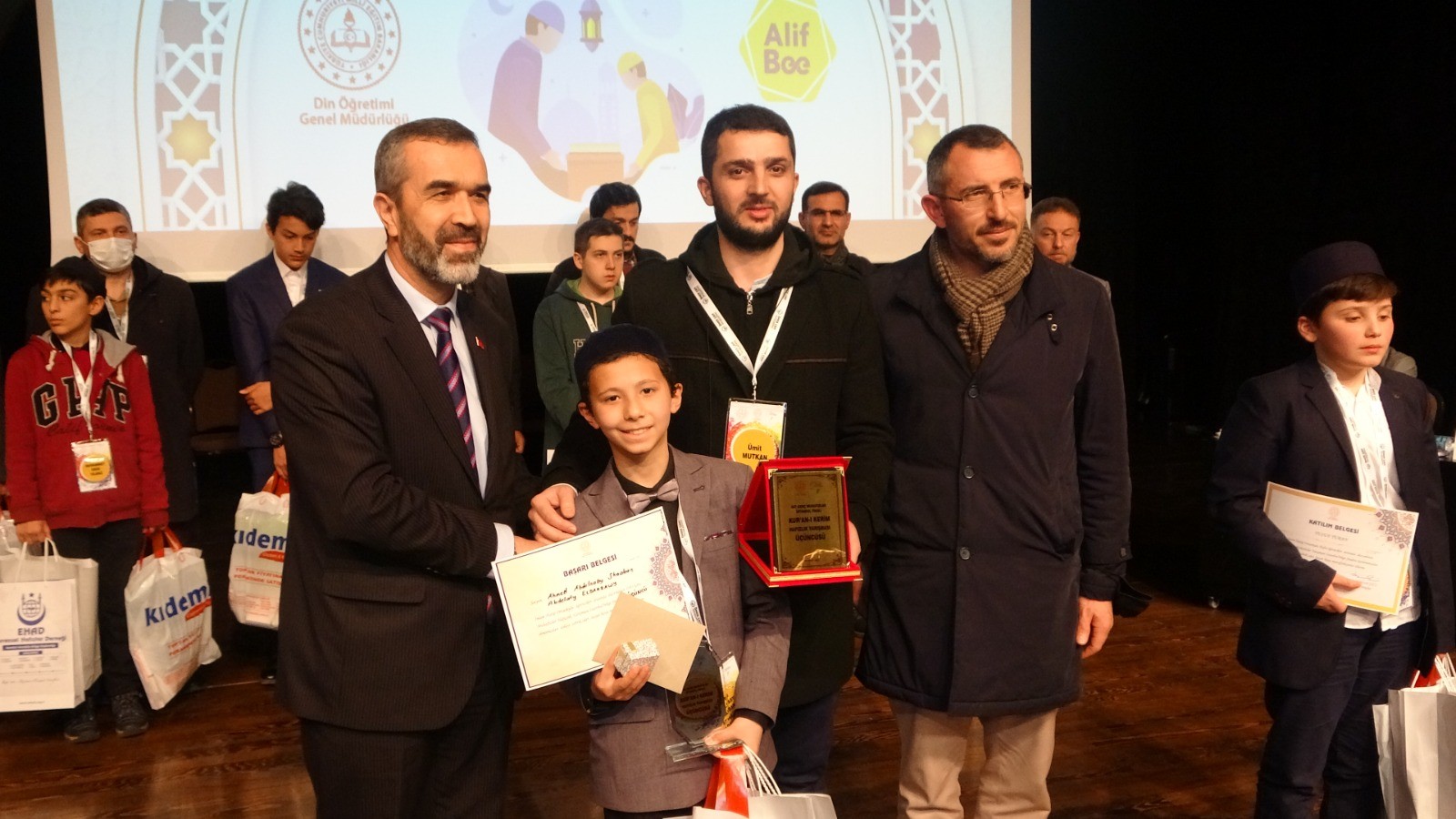 Hafızlık yarışması birincisi Mustafa İbrahim Okumuş ise “Aileme teşekkür ediyorum, geceleri yorulan anneme de çok teşekkür ediyorum. Babamın da çok emeği var okulumuza da çok teşekkür ediyorum. Güzel bir yarışmaydı, yarışmada hafif heyecan kapladı” ifadelerini kullandı.