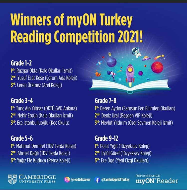 Cambridge yayınlarının MyOn uygulamasını kullanarak öğrenciye hem kitap okuma hem de yabancı dili etkin kullanma yeteneği katmak isteyen Kale Okulları, Türkiye çapında gerçekleşen yarışmada 2 dereceyle farkını ortaya koydu.
