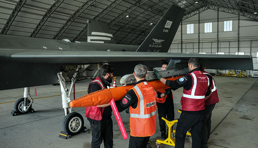 Türkiye’nin İlk İnsansız Savaş Uçağı Bayraktar KIZILELMA, Gökdoğan Hava Hava Füzesi Bağlı Uçuş Testi’ni başarıyla tamamladı. TC-ÖZB5 kuyruk numaralı 5’inci prototipi ile havalanan milli insansız savaş uçağı çok sayıda manevra yaparak, 1 sorti gerçekleştirdi. Füze büyük bir titizlikle KIZILELMA’ya yüklendi. AKINCI ve KIZILELMA’nın havalandığı anlar İhlas Haber Ajansı’nın dron kamerasına yansıdı. Baykar Uçuş Eğitim ve Test Merkezi Birim Lideri Halil Akar, “KIZILELMA hava aracımıza kazandırmayı hedeflediğimiz en önemli kabiliyetlerden bir tanesi hava hedeflerine angaje olabilme kabiliyeti. Şuan da dünya üzerinde hiçbir insansız savaş uçağı bu kabiliyete sahip değil” dedi.