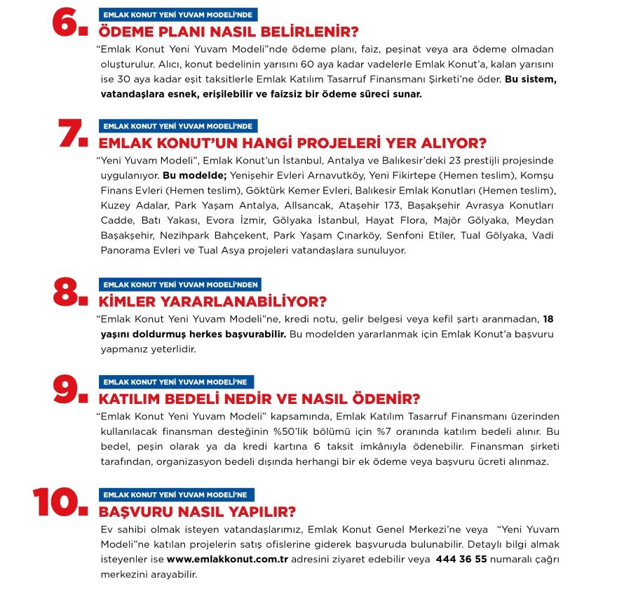 ‘Yeni Yuvam Modeli’ne, kredi notu, gelir belgesi veya kefil şartı aranmadan, 18 yaşını doldurmuş herkes başvurabilir. Bu modelden yararlanmak için Emlak Konut’a başvuru yapmanız yeterlidir.