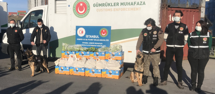 Ambarlı Limanı’na Güney Amerika’dan gelen muz konteynerlerinde arama yapan Gümrük Muhafaza ekipleri, muzların arkasına gizlenmiş bölmede piyasa değeri yaklaşık 65 milyon lira olan 88 kilogram kokain ele geçirdi. Maddelerin tespitinde hassas burunlu Hugo ve Breki’nin yanı sıra X-ray cihazı da kullanıldı.