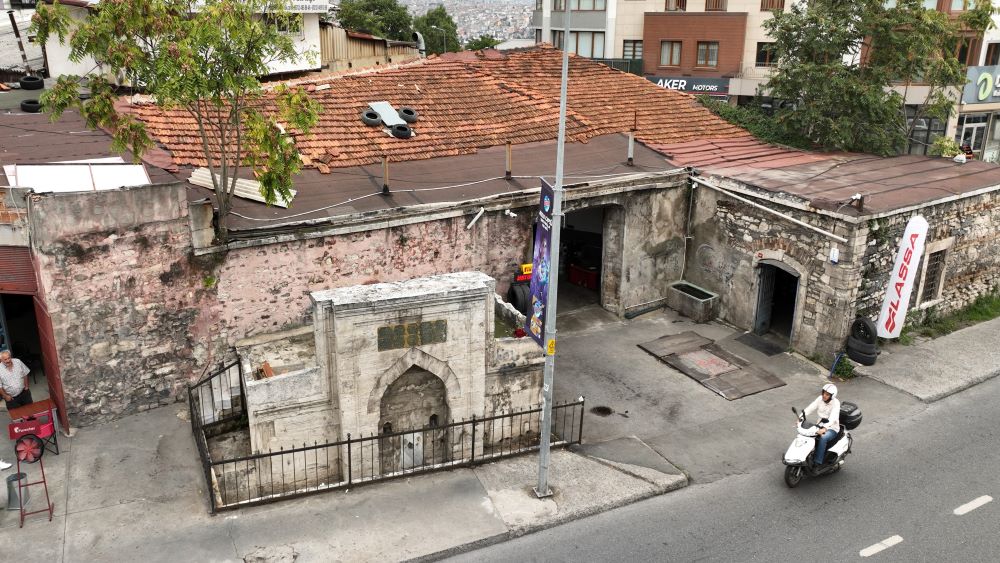 Eyüpsultan’da Sadrazam Öküzcü Mehmet Paşa tarafından 1600’lü yılların başında inşa ettirilen tarihi yapı kendi haline terk edilince alüminyum doğrama ve oto lastik dükkanı oldu. Yapıya monte edilmiş tabelaların belediye ekipleri tarafından söküldüğü tarihi binadaki esnaflar isyan ederken, turizme değil de lastik sektörüne kazandırılan yapı havadan görüntülendi.