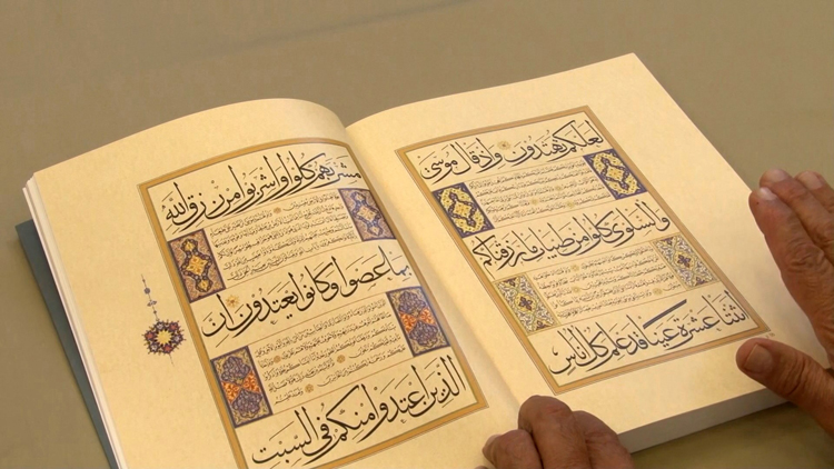 Muammer Semih İrteş, “Bu Kur’an Osmanlı’nın bir nakkaşhane üslubuyla meydana getirmiş olduğu en önemli eser olarak anılmaktadır. Biz de tezhip sanatıyla uğraştığımız için bu konuyla ilgili çalışmalara aslında 40 yıl önce başladım. Tabi bu süreçte Karahisari Kur’an’ında ‘koltuk’ olarak tabir ettiğimiz tezhiplerin 2 bin 360 tane olması çok önemli. Bu 2 bin 360 tane koltuğun 600 tanesi tasarım olarak birbirinden farklı. Bu şu anlama geliyor; Yani 16. Y.Y.’ın tezhip sanatının tezyinatıyla ilgili nakkaşhanenin muazzam bir çalışma içerisinde olduğunun kanıtı. Bu 600 tane koltuk içerisinde bizim kullanmış olduğumuz Rumi ve Bulut motifleriyle yapılmış namütenahi tasarımlar var. Bu süreç içerisinde yapmış olduğum bu tezhipler, analizler, fırça üslupları olsun bunlarla ilgili yoğun çalışmaların neticesinde ortaya çıkan bu eser bu alanda çalışma yürüten kişilere örnek olması da amaçlarım arasında. Burada 1. cilt olarak ele aldığım bu Kur’an-ı Kerim’de Rumi ve Hatayi motifleri ile ilgili olan tasarımları sadece ele aldık. Bundan sonraki ciltlerde diğer ve motifler ve analizlerini vererek bu alana yönelen arkadaşlarımıza önemli kaynak oluşturmuş olacağız. İlk cilt için aldığım güzel tepkiler ikinci cildi oluşturmam için bana bir motivasyon olacak” diye konuştu.