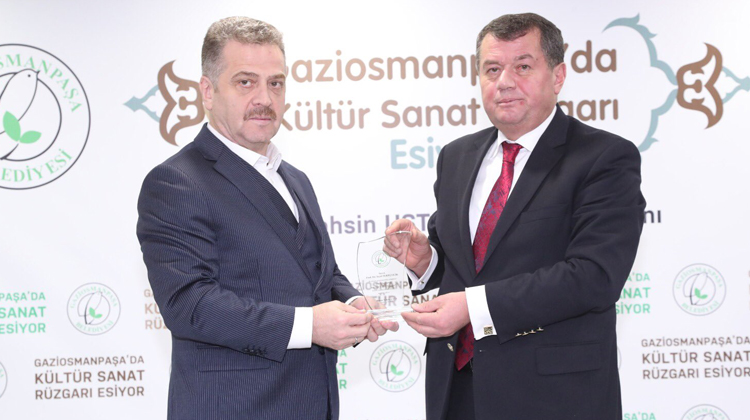 Gaziosmanpaşa Belediye Başkanı Hasan Tahsin Usta, programın sonunda Cumhurbaşkanı Başdanışmanı Seyit Sertçelik’e plaket takdim etti.