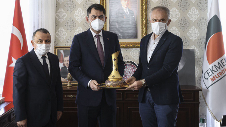 Ziyarette Çekmeköy Belediye Başkanı Ahmet Poyraz ve belediye başkan yardımcıları tarafından karşılanan Bakan Kurum’a, ilçede yapılan çalışmalar ve yapılması planlanan yatırımlar hakkında bir sunum yapıldı.