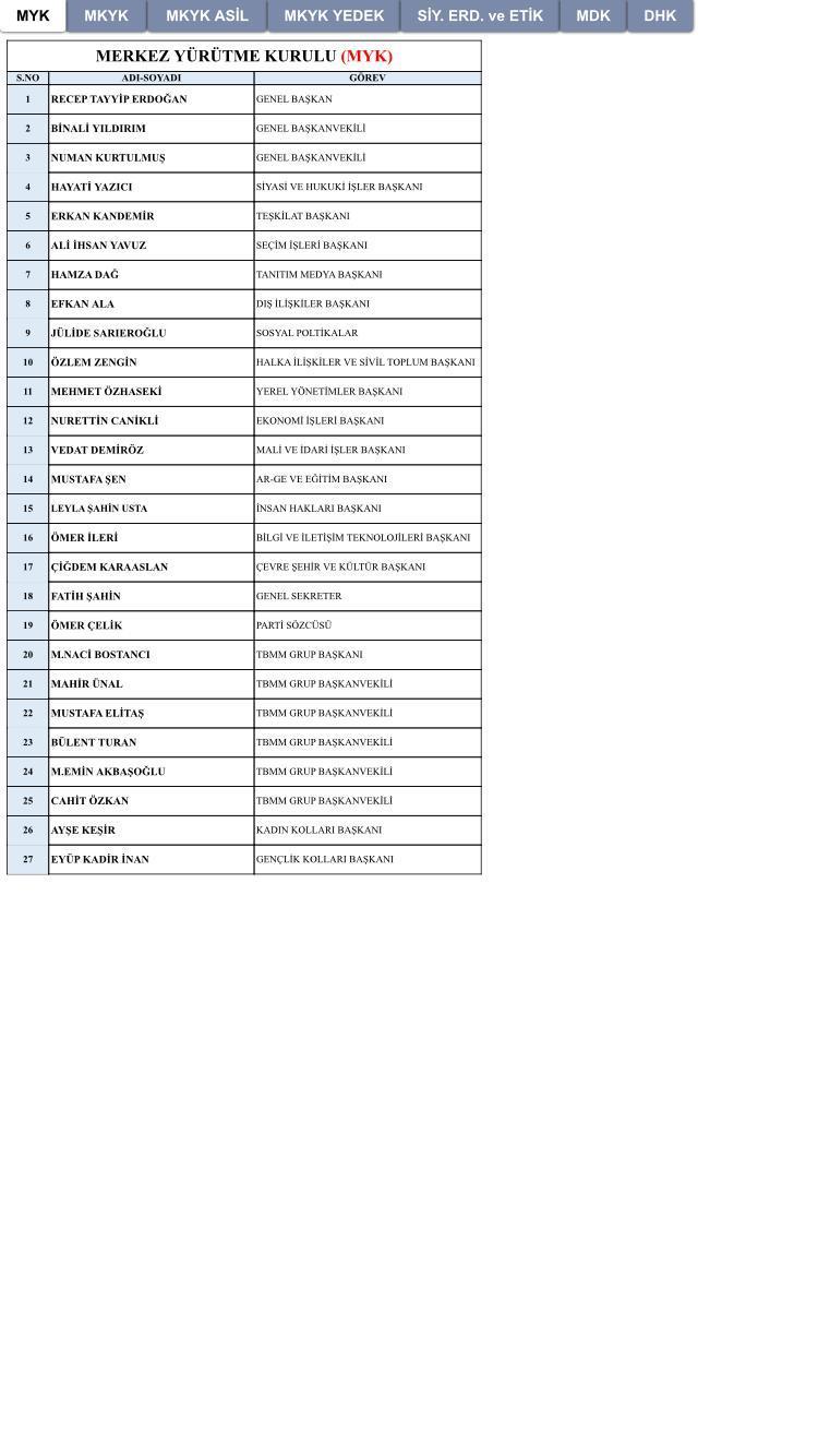 AK Paryi Genel Başkanı ve Cumhurbaşkanı Recep Tayyip Erdoğan Yürütme Kurulunu açıkladı.