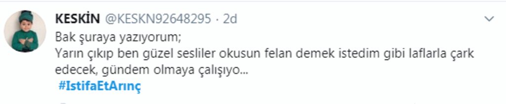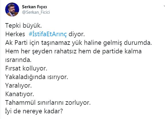 #İstifaEtArınç etiketi Twitter’da en çok konuşulanlar listesinde birinci sıraya yerleşti.
