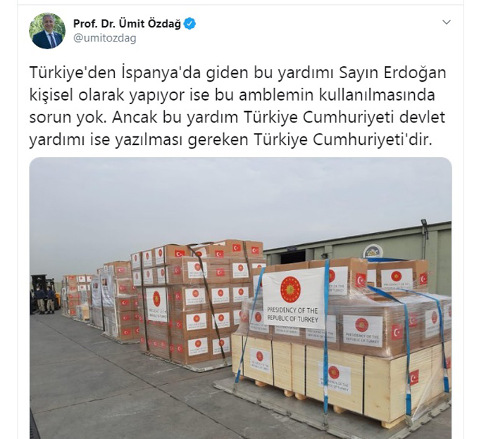 Ancak gönderilen kolilerin üzerinde presıdency of the Republic of Turkey yazıyor. Yani Türkiye Cumhuriyeti Başkanlığı yazıyor.