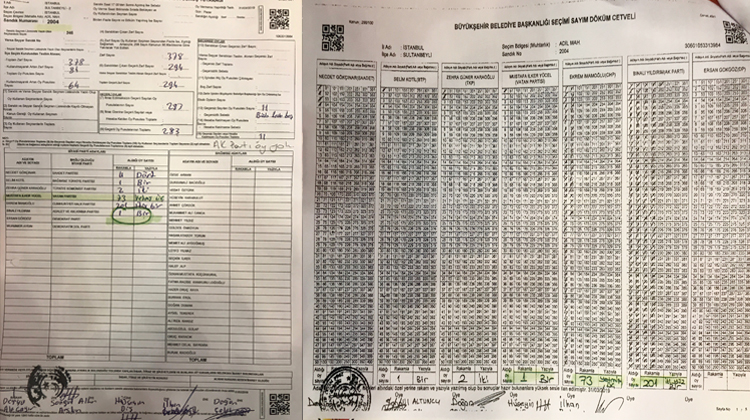 Şenocak, “Bakınız burada çok somut bir örneği kamuoyu ile paylaşmak istiyorum. Bu sandık kurulunda ilk oy tasnifi esnasında tüm kurul üyeleri huzurunda imzalanan sandık sayım döküm cetvelidir. Bu gösterdiğim de tüm işlemler bittikten sonra hazırlanan ve Yüksek Seçim Kurulu’na nüshası gönderilecek YSK sistemine bunun üzerinden giriş yapılan sandık sonuç tutanağıdır. Bu örnekte Bağcılar Sancaktepe Mah. 1212 No’lu sandıkta sayım döküm cetvelinde AK Parti’nin aldığı oy 131 iken, maalesef Yüksek Seçim Kurulu sistemine giren sandık sonuç tutanağında, İstanbul Büyükşehir Belediye Başkan adayımızın aldığı oy 1 olarak işlenmiştir” diye konuştu.