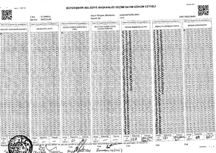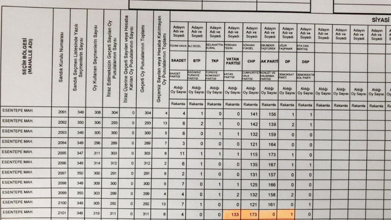 İstanbul’da aralarında tutarsızlık olduğu ileri sürülen bazı sandık sonuç ı ile oy sayım döküm çizelgeleri ortaya çıktı.