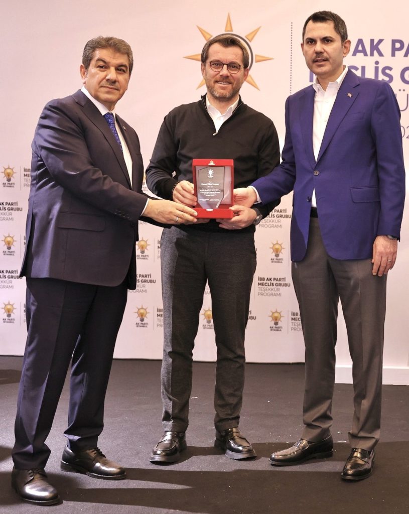 AK Parti İstanbul Büyükşehir Belediye Başkan Adayı Murat Kurum, konuşmasının ardından meclis üyelerine plaket verdi.