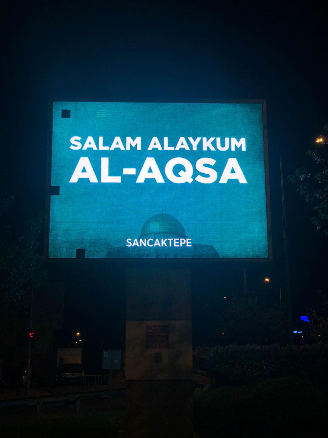 Sancaktepe Belediyesi, Siyonist İsrail’in saldırılarına maruz kalan Mescid-i Aksa’yla ilgili ilçenin caddeleri, ana arterleri ve belediye binasının etrafında bulunan billboardlara “Salam Alaykum AL-AQSA” yazılı mesajı yayınlayarak Filistinlilere destek verdi.