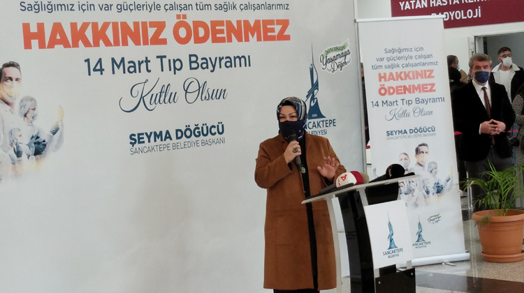 Programda konuşan Sancaktepe Belediye Başkanı Avukat Şeyma Döğücü, “14 Mart Tıp Bayramımızdı. Biz de kıymetli sağlık çalışanlarımıza koronavirüs ile mücadele sürecinde göstermiş oldukları fedakarca çalışmalardan dolayı hep teşekkür ettik, çeşitli çalışmalarla yanlarında olduk. Onlara destek vermeye çalıştık. Bugün vesilesiyle de sağlık çalışanlarımıza bir şükran ifadesi olarak küçük bir rekreasyon alanı, hava alabileceği, dinlenebileceği, nefes alabileceği güzel bir mini park yaptık. Dolayısıyla bugün onun açılışı vesilesiyle bir araya geldik. Doktorlarımızın özellikle sanatçı ruha sahip olduklarını, ince bir ruha sahip olduklarını biliyoruz. Sağlık çalışanlarımızın yapmış olduğu resimleri görünce ben gerçekten çok mutlu oldum. O hassasiyetlerini, o ince ruhlarını yansıtmışlar bu resimlere de. Bu vesileyle 14 Mart Tıp Bayramı’nı kutluyorum” dedi.