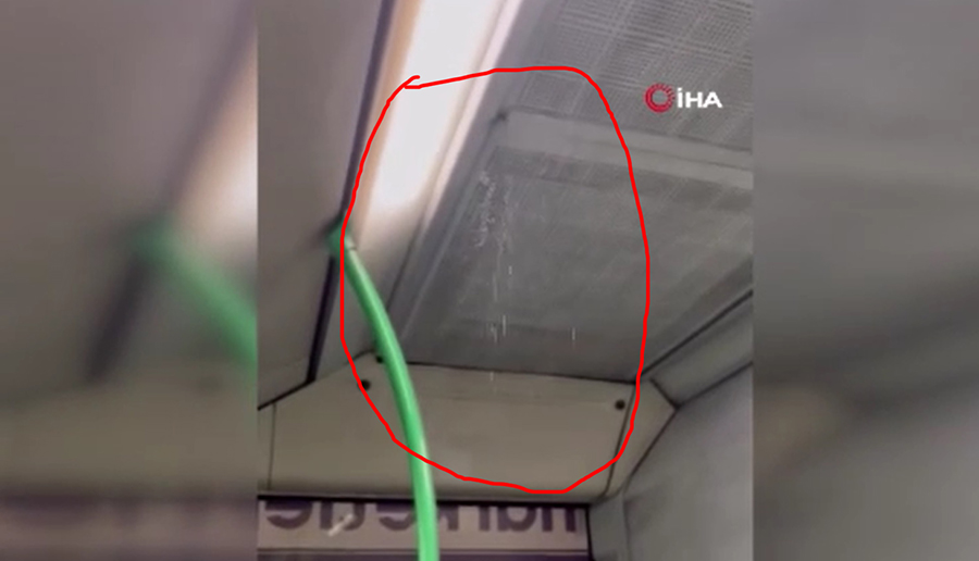 İstanbul’da etkili olan sağanak yağış, toplu taşıma seferlerini de etkiledi. İETT otobüslerinin tavanından su akınca, yolcular ne yapacağını şaşırdı. 98 AB Halkalı Bakırköy seferini yapan otobüste ilginç görüntü kameralara yansıdı. Otobüsün tavanından su aktığını gören yolcu, oturduğu yerde ıslanmamak için şemsiyesini açtı. Kadın yolcu, seferi şemsiyeyle tamamladı. Benzer bir görünü Arnavutköy’de de kaydedildi. 36 AY Arnavutköy Yenibosna seferini yapan otobüsün tavanından da adeta yağmur gibi su aktığı görüldü.