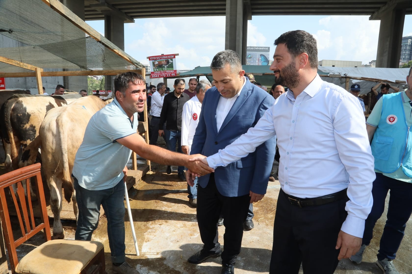 Kağıthane’de kurbanlıklarını temiz ve güvenilir bir ortamda satışı için oluşturulan pazaryerinde Belediye Başkanı Mevlüt Öztekin ve Kaymakam Tahir Şahin incelemelerde bulundu.