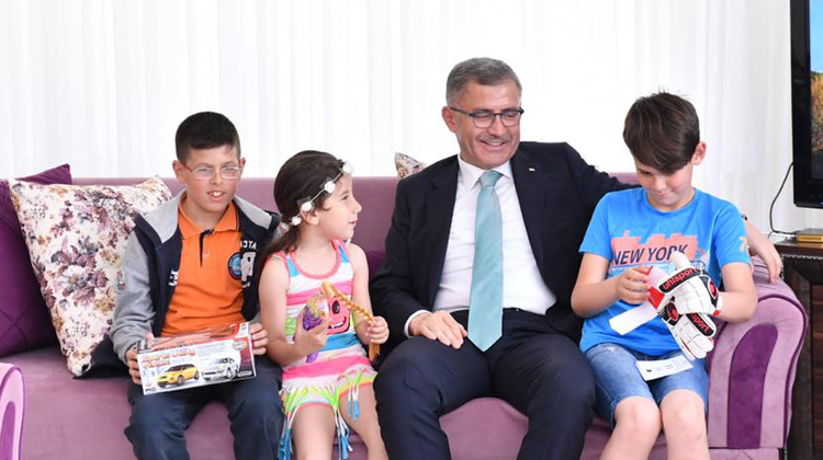 Hilmi Türkmen, özellikle de Kaan’ın evine giderek istediği bisiklet ve kaleci eldivenini teslim etti. Mutluluğu gözlerinden okunan Kaan, Başkan Türkmen’e teşekkür ederek, “Sizi her zaman sözünü tutan başkan olarak hatırlayacağım” dedi.