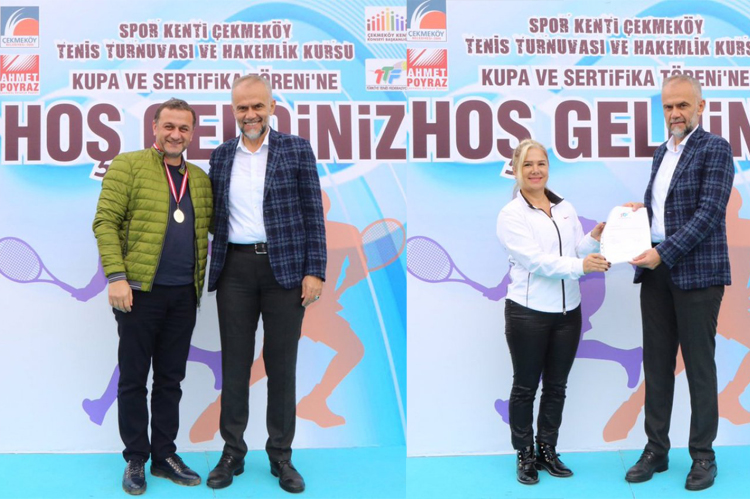 Spor Kenti Çekmeköy Tenis Turnuvası ve Hakemlik Kursu Kupa ve Sertifika töreni Özgecan Aslan Parkı’nda gerçekleşti. Törende; turnuvaya katılarak dereceye girenler kupalarını, hakemlik kursunu bitirenler ise sertifikalarını Çekmeköy Belediye Başkanı Ahmet Poyraz’dan aldılar.