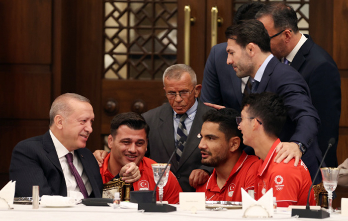 Cumhurbaşkanı Recep Tayyip Erdoğan, Tokyo 2020 Olimpiyatlarında Türkiye’yi temsil ederek madalya kazanan sporcular, yöneticileri ve aileleri ile bir araya geldi.