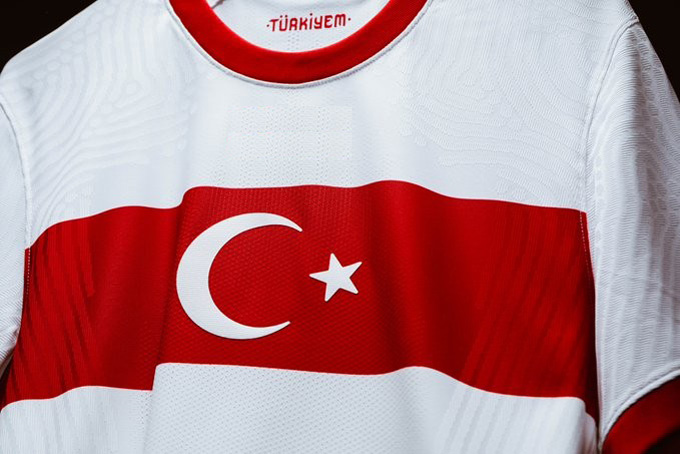 Türkiye iç saha forması, göğsünde beyaz üzerine kalın ve kırmızı bant tasarımıyla taraftarın karşısına çıkıyor. Milli Takım’ın giydiği ilk formadan esinlenilen tasarım modern dokunuşlarla geleceğe de göz kırpıyor. Büyük ay ve yıldız, bantın ortasında ve tasarımın merkezinde yer alıyor. Beyaz şort ve kırmızı detaylara sahip çoraplarla kit tamamlanıyor.