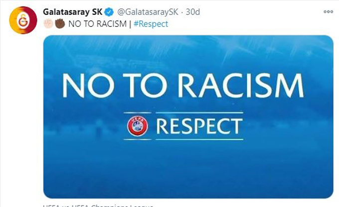 Galatasaray, Fenerbahçe, Beşiktaş, Paris Saint-Germain maçında ırkçılık yaşayan Medipol Başakşehir için destek paylaşımları bulundu.