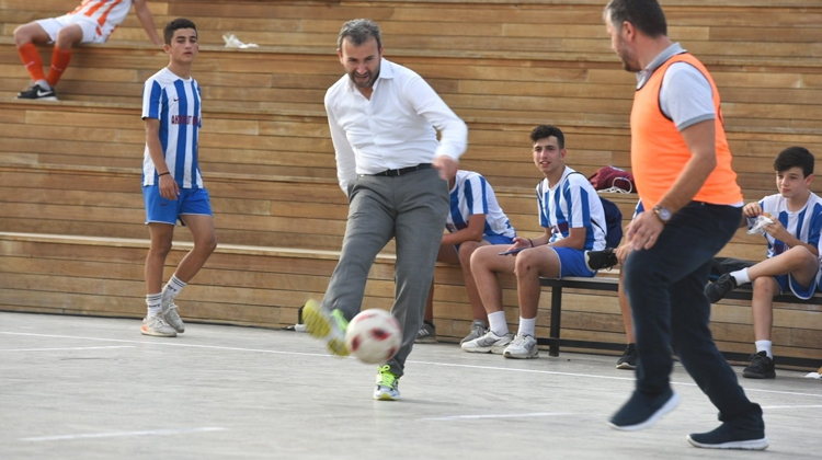 Pendik Belediye Başkanı Ahmet Cin, törenin yapıldığı salonda futbol topuna profesyonel futbolcuları aratmayacak iç üst bir vuruş sergilediği objektiflere yansıdı…