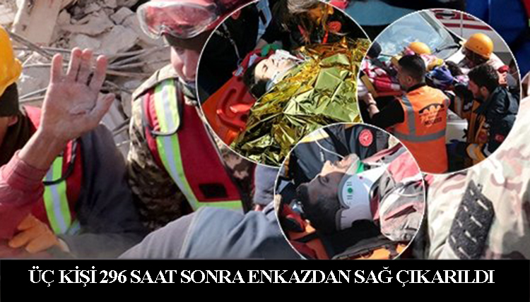 Hatay’da depremin 296. saatinde biri çocuk 3 kişi enkazdan canlı olarak çıkartıldı.