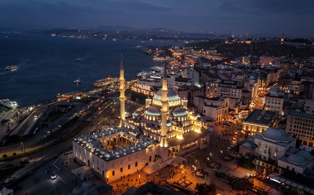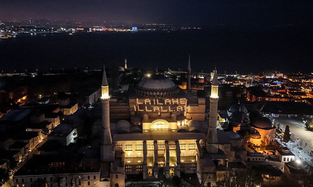 Osmanlı Cihan Devleti’nde ilk olarak Sultan 1. Ahmet döneminde Sultanahmet Camii’ne dini sözlerin yazılı olduğu kandillerin asılmasıyla başlayan mahya geleneği 450 yıllık yıldır camileri süslüyor. İstanbul’da Arife gecesi yanmaya başlayan mahyalar havadan görüntülendi.