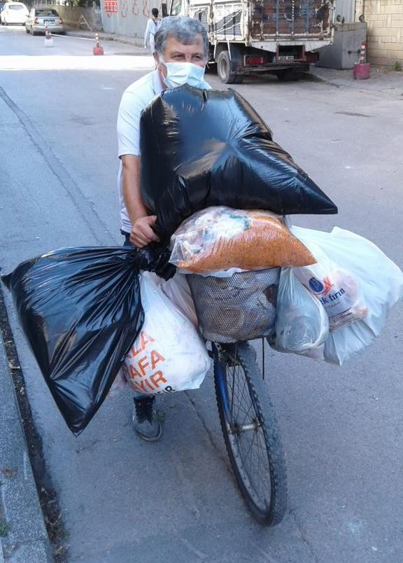 Erenköy Mahallesi’nde yaşayan Türkiye gazetesinin emekli muhabiri Cüneyt Bitikçioğlu, her sabah bisikleti ile yola çıkarak mahalledeki fırın ve restoranları ziyaret ediyor. Bitikçioğlu, restoran ve fırınlarda artan yemek ve bayat ekmekleri toplayarak mahalle ve ormanlardaki hayvanları besliyor. O anlara dair görüntüler amatör kameraya yansıdı.